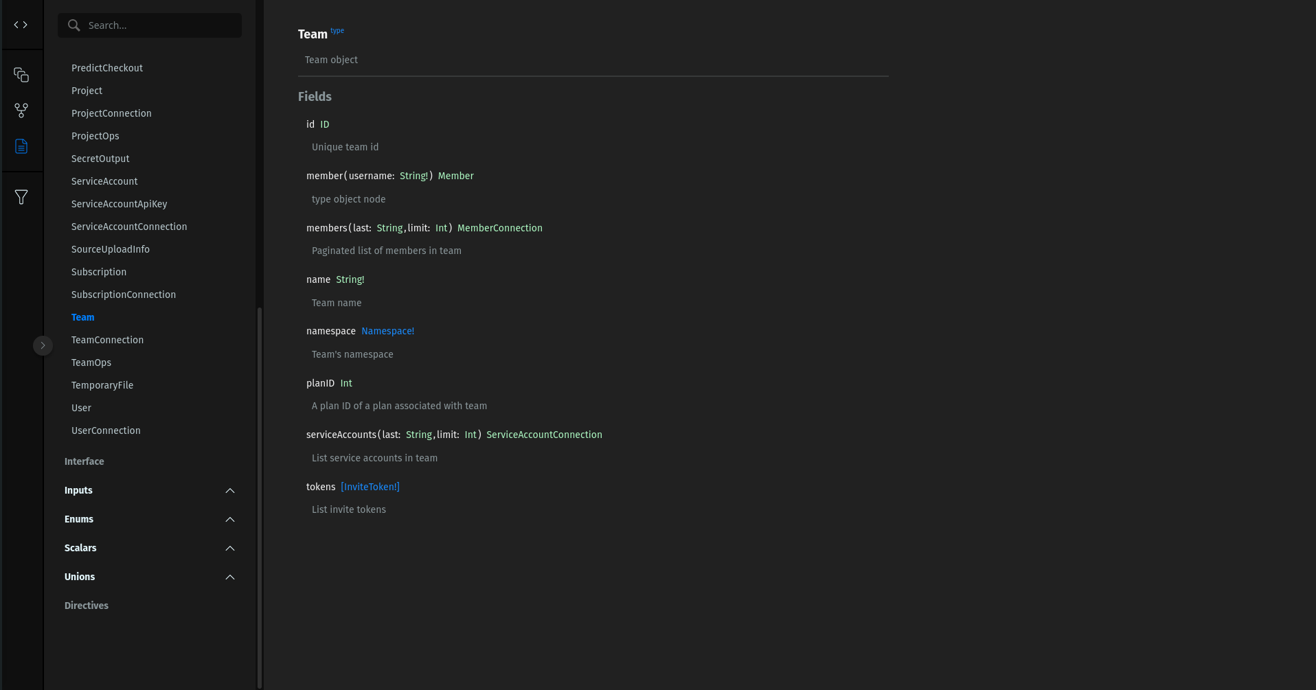 All descriptions inside a schema are rendered with a remark markdown engine. After clicking a type inside the Table of Contents the interface should scroll down to that field in the schema. If you click on the type inside a field in the schema it will also navigate you to the page containing the documentation of the clicked type.